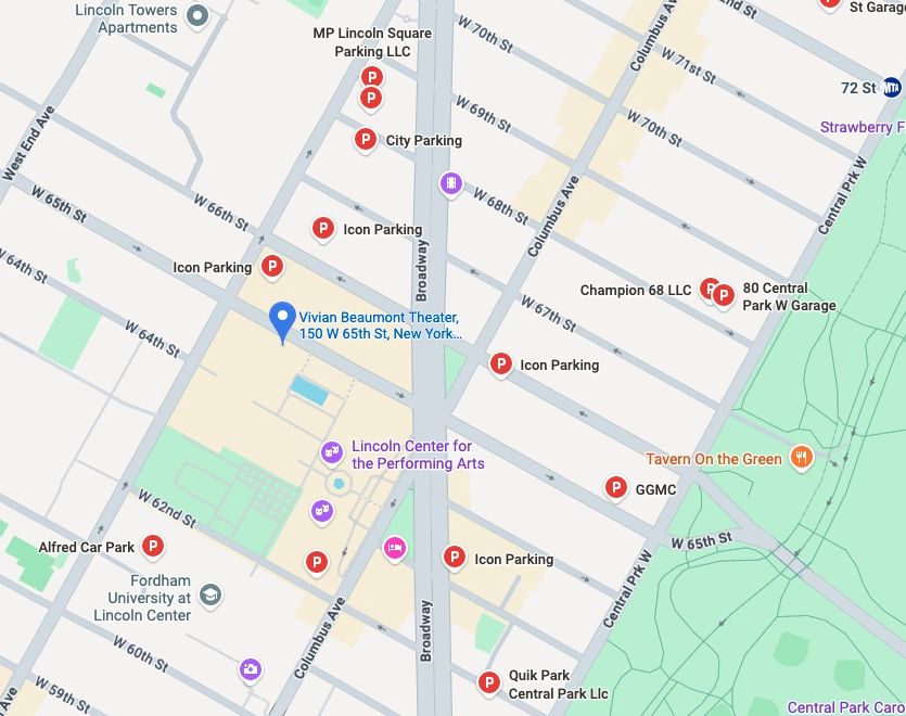 There are many parking options available near the Vivian Beaumont Theater, with both on-street and nearby parking garages within a 10-15 minute walk. Spaces closest to the venue are likely to fill up quickly on popular performance nights, so guests are recommended to arrive early, or book spaces at a parking garage in advance. Several parking garage options and contact details are listed below.